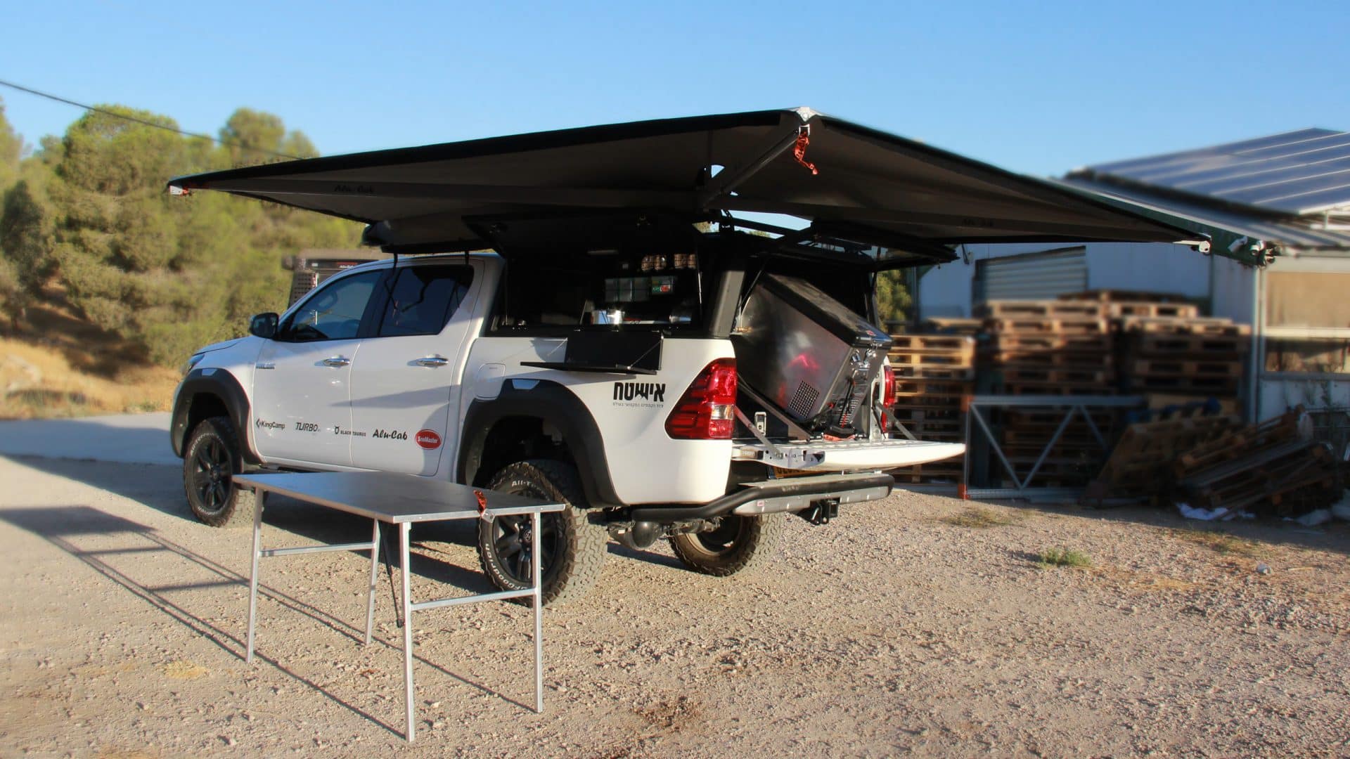 - שולחן אלומיניום מתקפל AluTable – מותקן על תקרת הארגז ונשלף לשימוש.