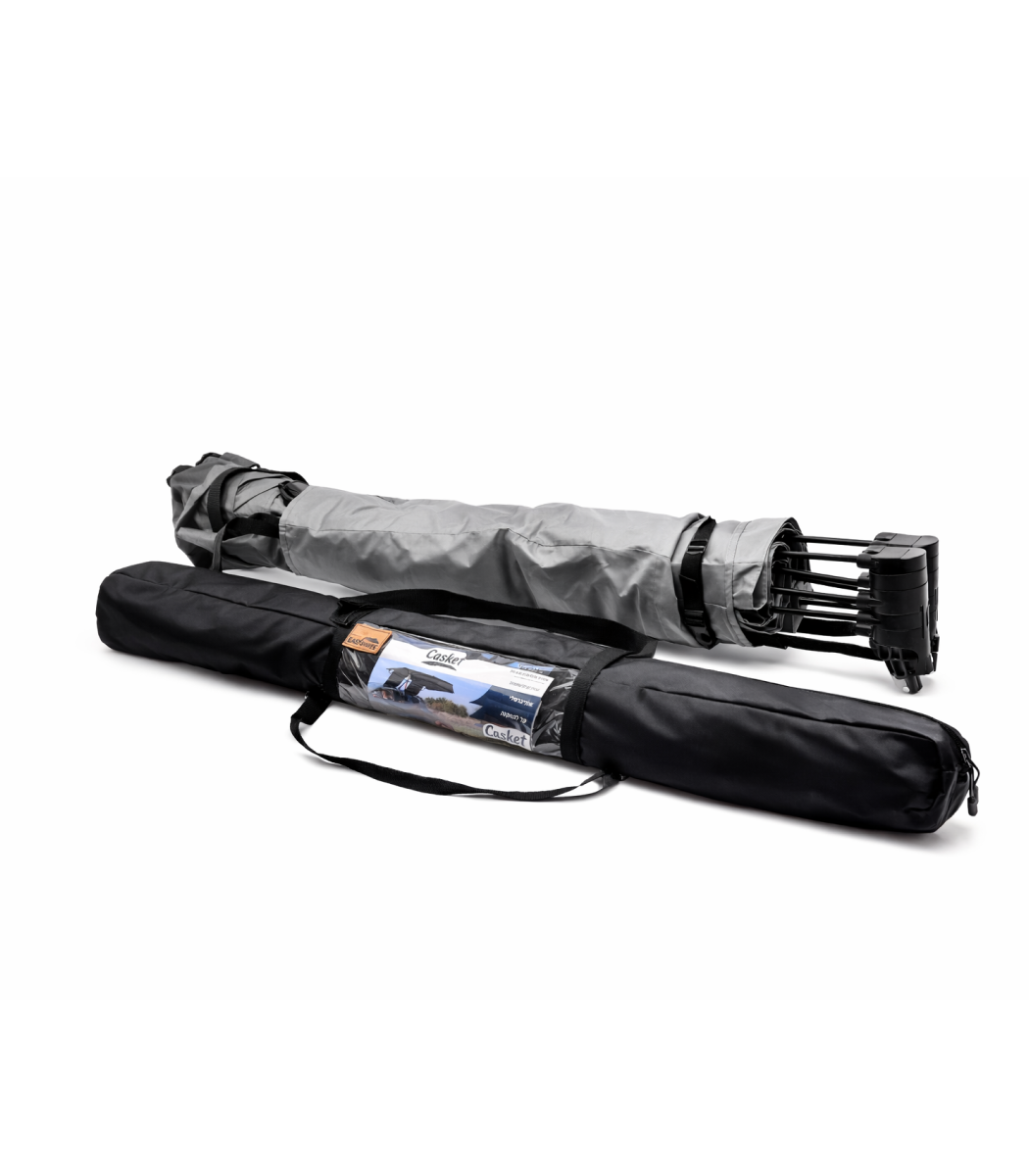 סוכך ה"קסקט" (Casket) של חברת EasyShade הישראלית הוא פטנט ייחודי המיועד למטיילים שמחפשים צל איכותי כאן ועכשיו. בניגוד לסוככנים קבועים (Awning) הדורשים גגון והתקנה מורכבת, ה"קסקט" מתחבר לכל רכב תוך פחות מ-2 דקות, ומעניק שטח הצללה איכותי בדיוק איפה שצריך אותו.
