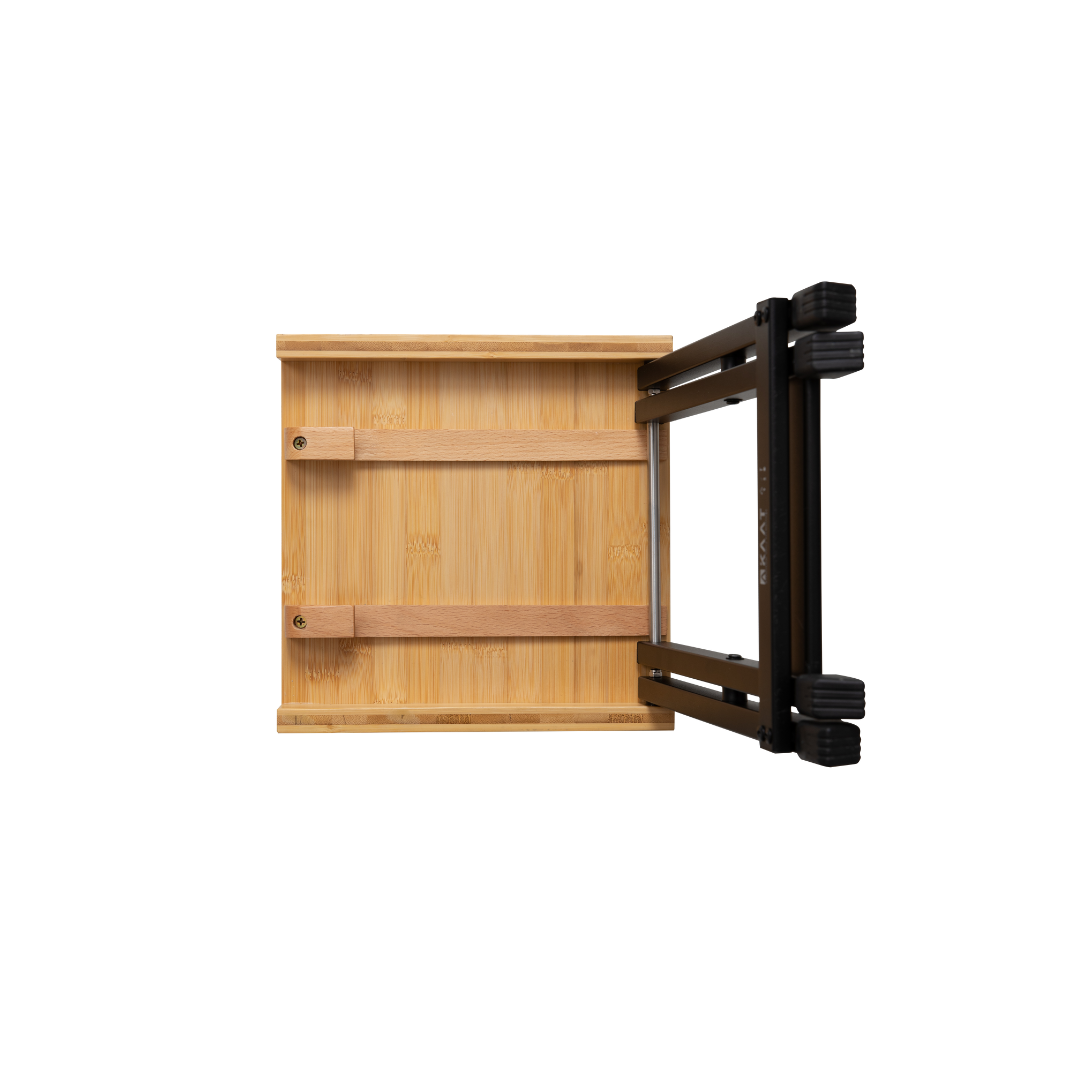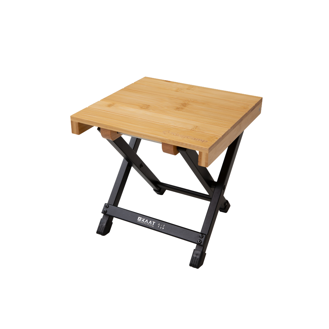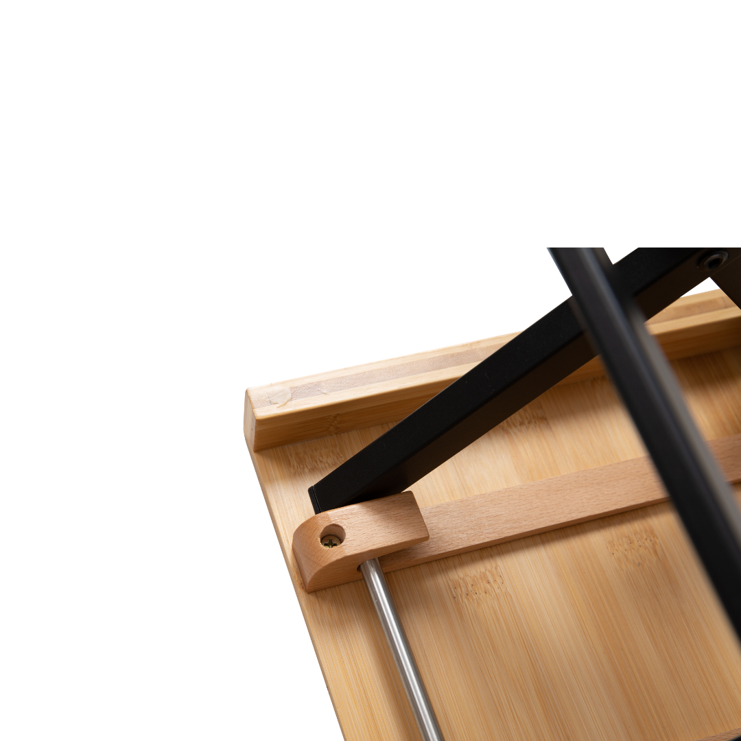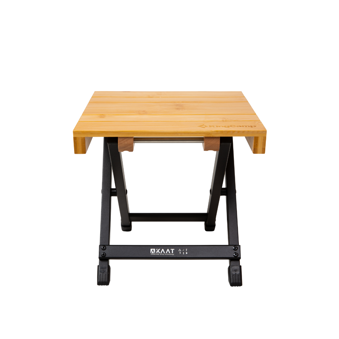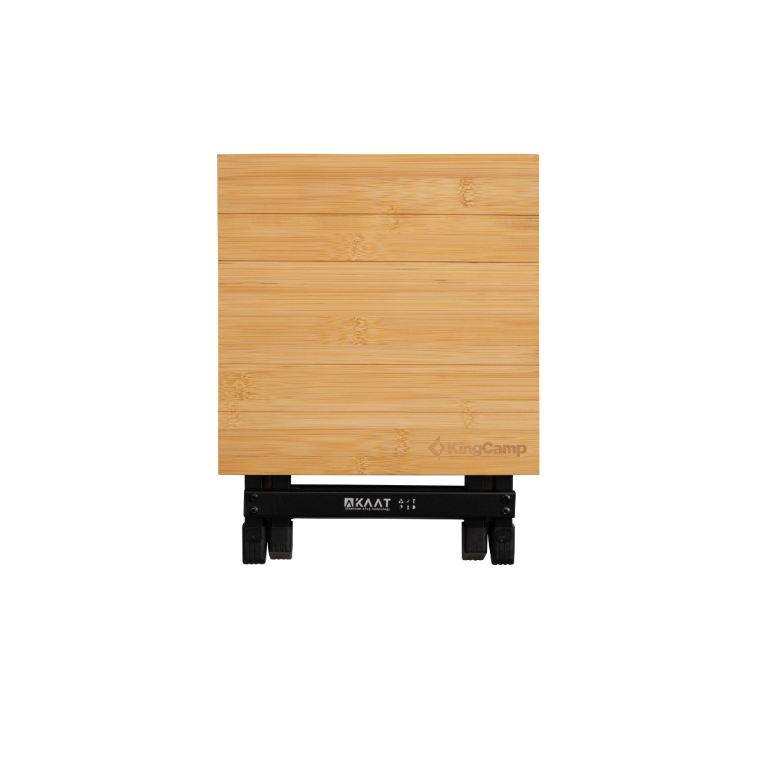 שולחן קפה שטח קטן ועמיד, עם פלטת במבוק טבעי על שלדת אלומיניום
