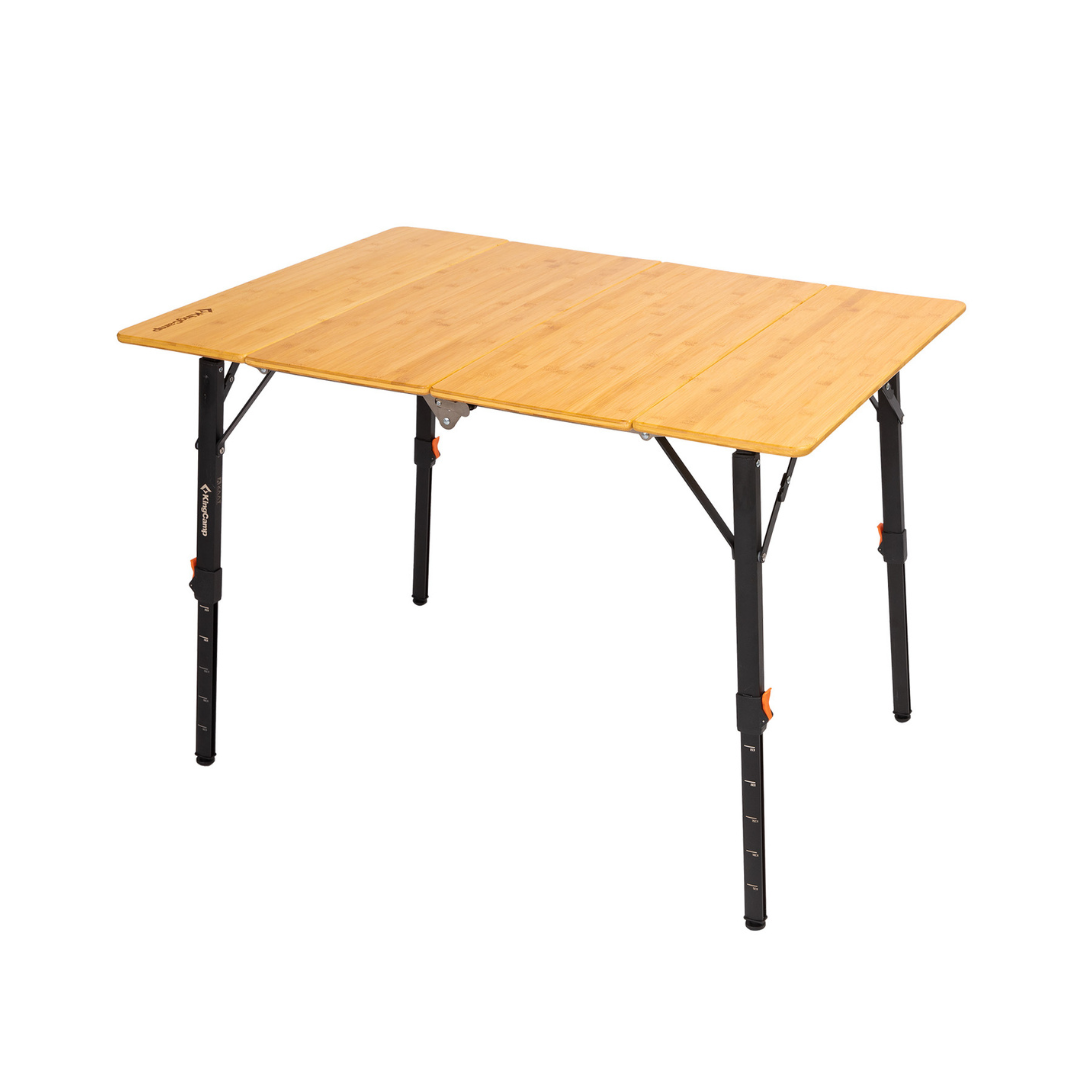 שולחן מתקפל לשטח עם פלטת במבוק טבעי, עמידה ונוחה למגע, על שלדת אלומיניום איכותית – חזקה, קלה ועמידה בפני חלודה.