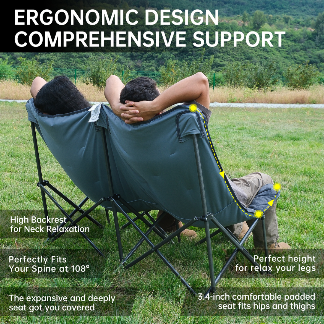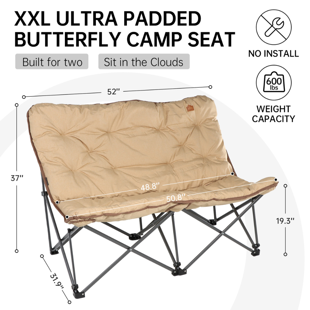 כיסא שטח מתקפל, רחב ומרופד היטב, שמעניק תחושת ישיבה מפנקת ממש כמו בבית. השלד עשוי פלדה חזקה ליציבות ובטיחות, הריפוד עשוי בד פוליאסטר איכותי (600D אוקספורד) עם מילוי פוליאסטר 280 גרם לנוחות מוגברת. הכיסא מתקפל בקלות ונכנס לתיק נשיאה עמיד לנשיאה נוחה ואחסון פשוט.